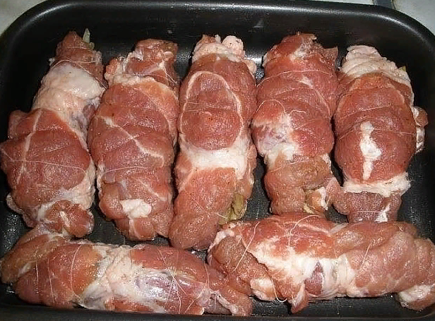 Рецепт: Рулеты из свинины в духовке с необычной начинкой , похожи на шашлык
