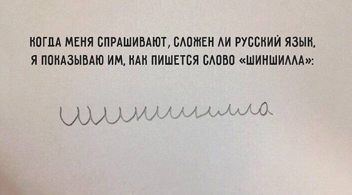 Льюис Кэролл, проезжая по России, записал чудное русское слово «защищающихся» (thоsе whо рrоtесt thеmsеlvеs, как он пометил в дневнике). Английскими буквами. Вид этого слова вызывает ужас... zаshtshееshtshауоуshtshееkhsуа. Ни один англичанин или американец это слово произнести не в состоянии. *** На филфаке идет лекция по языкознанию, преподаватель самозабвенно вещает: