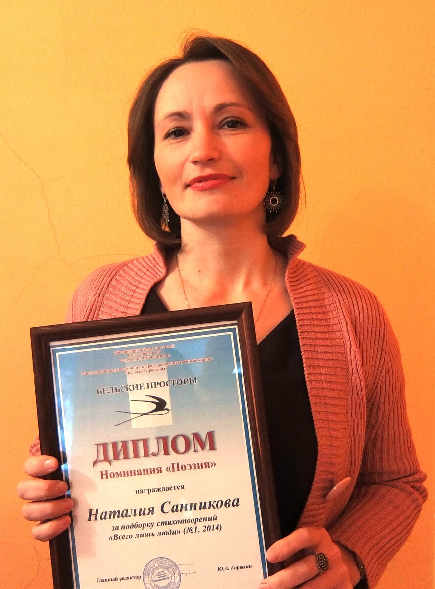 Не зря Наталия Санникова, известная уфимцам не только как литератор, но и как ведущая нескольких тематических передач на «Радио России — Башкортостан», естественным образом стала лауреатом в поэтической номинации журнала «Бельские просторы» за лучшие публикации 2014 года. У нее есть свой собственный стиль, отличающийся темпераментом, вкусом и изяществом мысли.