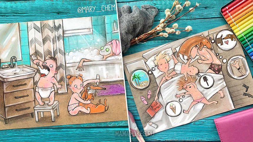 Мария Горбунова – мама погодок и по совместительству талантливый художник. Девушка ведет страничку в Instagram, где в ироничной форме документирует весь хаос жизни с двумя детьми (сыном Юрой и дочерью Мирой). При этом россиянка не только создает смешные картинки о мамских буднях, но и придумывает к ним забавные описания. Мы уверены, что если у вас есть дети, то вы точно узнаете себя в работах Марии и даже подумаете: «Да, это же про меня!». 10. «Если у вас есть дети, то каждый «День Валентина» проходит примерно по одному сценарию». 9. «Интересно, почему многие мамы жалуются, что у них совершенно нет времени на себя. Даже на то, чтобы элементарно принять ванну. Я всегда нахожу для этого время. В чем секрет? Смотрите сами! P.S Упс, теперь муж узнает почему в его щетке так быстро разряжаются батарейки». 8. «Мой муж с радостью остается с малышами наедине. К моему удивлению, он очень быстро нашел к ним подход. И я долго не могла понять, в чем его секрет. Пока однажды мы не проезжали мимо мак