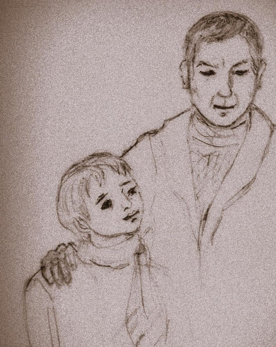 Когда он после школы возвращался домой, то под соснами за магазином увидел лежащего лицом вниз отца. Тот был пьян и не мог подняться. Было холодно. Алешка испугался, что отец замерзнет, и принялся тормошить его, но все было бесполезно. Он решил позвать кого-нибудь на помощь, побежал в деревню и увидел маму. Она шла куда-то по делам, и, выслушав, приказала ему сейчас же идти домой. На глазах ее были слезы. Алешка постоял, глядя ей вслед, затем вернулся к отцу и снова затормошил его. Спустя какое-то время, ему удалось заставить отца встать со снега, и они дошли постепенно до дома.