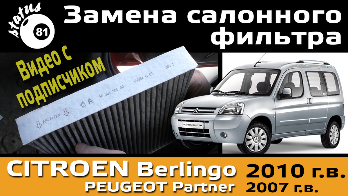 Замена салонного фильтра Ситроен Берлинго 2010 / Замена салонного фильтра Пежо Партнер 2007