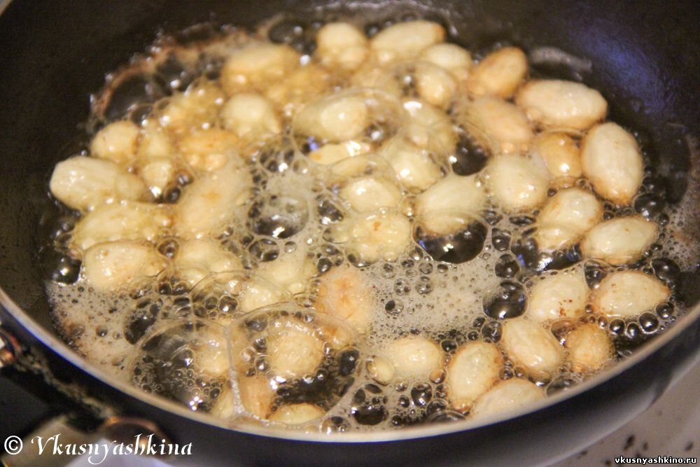 3. Обсушите очищенный миндаль бумажным полотенцем и обжарьте на масле до золотистого цвета.