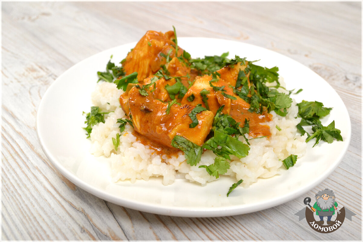 Всем привет! Сегодня готовим необычное и очень вкусное блюдо - курочку по-индийски. Нам очень нравятся присущие восточной кухне букеты ароматных приправ. С удовольствием делимся с вам этим рецептом и уверены, он не оставит Вас равнодушными. Приготовленная по этому рецепту курица в насыщенном густом соусе получается очень вкусной и нежной. А аромат просто не передать словами. Это блюдо отлично подойдет к рису или макаронам. Обязательно попробуйте😉 Подробный видео рецепт Вы можете посмотреть в конце статьи Для приготовления нам понадобится: Пошаговый рецепт: 1) Мелко нарезаем лук и чеснок. 2) На сковороду наливаем растительное масло и добавляем к нему 30 грамм сливочного масла. Смесь масел даст более насыщенный вкус. Нагреваем. Высыпаем лук и чеснок, добавляем чайную ложку измельченного свежего имбиря. Обжариваем все до золотистого цвета. 3) Добавляем специи: гарам масала, молотый кориандр и карри. Также добавляем томатную пасту и заливаем все стаканом кипяченой теплой воды. Подсали