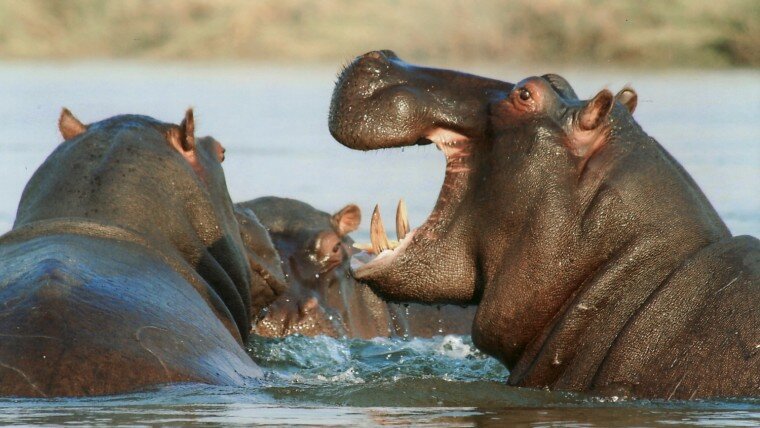 1. Бегемот Бегемоты выглядят как медленные, неуклюжие великаны. Кажется, что это то самое существо, которое может подружиться с маленьким ребенком или милым зверьком. Но репутация эта в корне неправильная. Несмотря на то, что бегемоты по большей части травоядные животные, они невероятно агрессивны и удивительно проворны. Также замечено, что иногда они не прочь полакомиться антилопами гну, импалами, куду, буйволами и даже другими бегемотами. Кажущиеся умилительными манеры бегемота, такие как зевание и «смех», на самом деле могут быть причиной беспокойства, поскольку это признаки угрозы. Хотя они и не охотятся за людьми, но встреча с бегемотом в джунглях иногда может привести к опасной ситуации. «Они не выходят и не охотятся на людей, но если вы столкнетесь с ними на обратном пути к воде и окажетесь между бегемотом и водой, вам придется составить план быстрого отхода!», - говорит эколог-исследователь и исследователь Южной Африки по охране природы Юхан Экстин. 2. Африканский буйвол