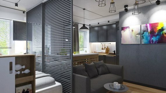 проект маленькой квартиры от ForestGum : студия в стиле модерн. Площадь квартиры 30 кв.м.