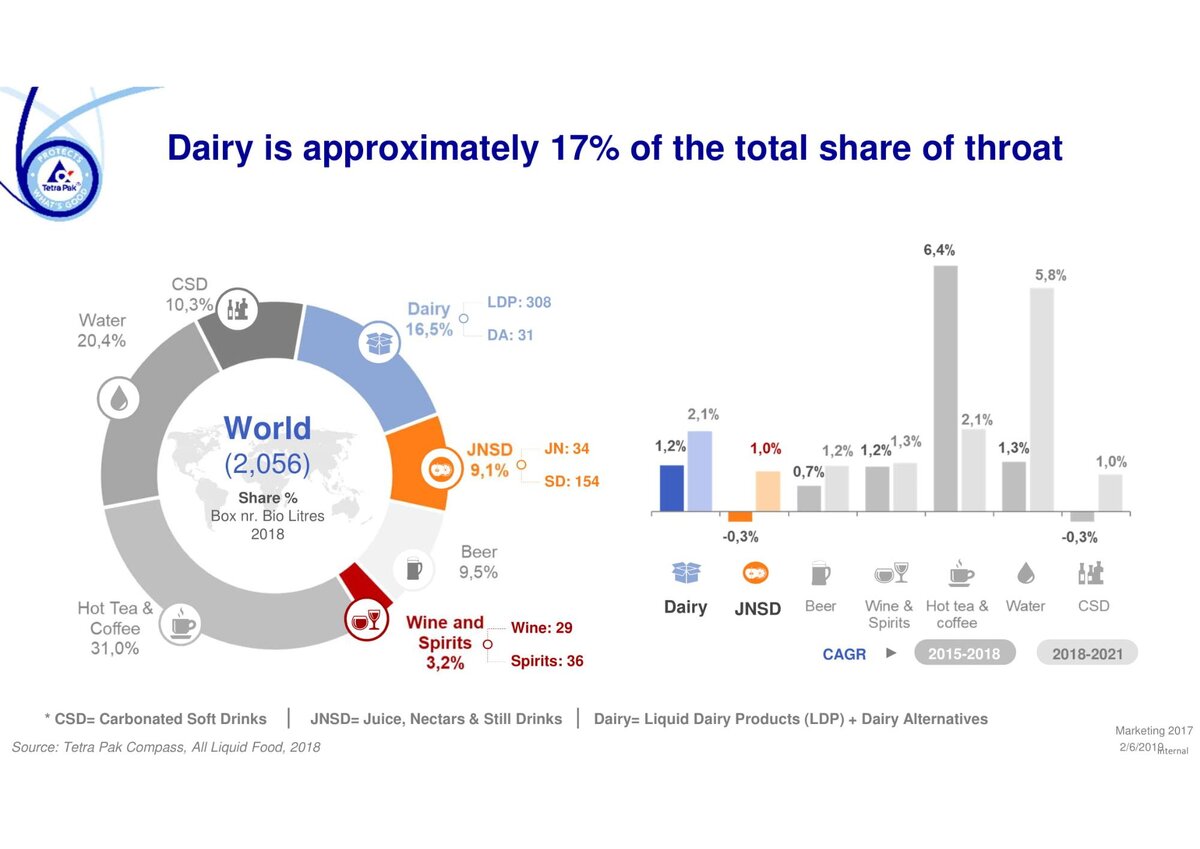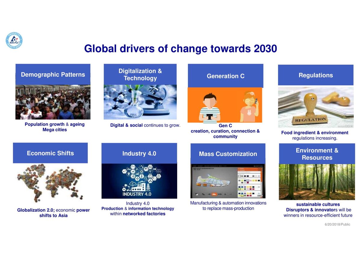 Алехандро Карвальо, директор по маркетингу ГК Тетра Пак, выступая на Форуме молочных аналитиков, организованном The DairyNews и Центром изучения молочного рынка, рассказал о том, что производители должны выходить за пределы привычных категорий и находится в постоянном поиске экспертизы для себя. Молочный рынок зависит от стремительно меняющегося мира, подчеркнул Алехандро Карвальо, рассказав о мега-трендах, влияющих как на бизнес переработчиков молока, так и на бизнес компании Тетра Пак. - Мы пристально смотрим на новые технологии 4.0. Поколение C - поколение потребителей, которое всегда на связи, креативные люди, с которыми мы должны научиться работать. Еще один важный момент - экономические изменения, и с точки зрения развития экономики центром притяжения является Азия. Еще одним важным трендом является старение населения, на это нужно обращать внимание, - подчеркнул Алехандро. Важным остается регулирование и законы, все, что касается нормативов по сахару, требов