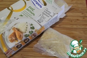Ингредиенты для «Ароматный рис с куриными грудками»: Количество порций: 2 Рецепт «Ароматный рис с куриными грудками»: В кипящую подсоленую воду опускаем пакетики с рисом и варим на медленном огне 30 минут. Грудки разрезать на не тонкие полоски - одна грудка на 3 полоски. Обматать каждый кусочек беконом и уложить в формы или в одну форму. Оливковое масло взбить миксером вместе с уксусом, черным перцем и в последнюю очередь влить мед - получается тягучий соус. Духовку разогреть до 210 градусов.