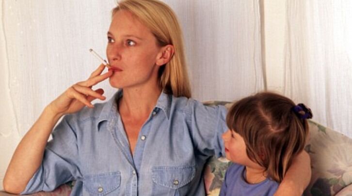 курит сигареты.
