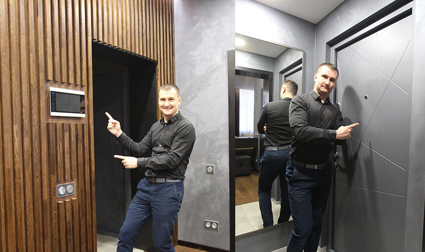 Хотите поразить гостей Вашего дома и удивить их с порога? Позаботьтесь о том, чтобы интерьер прихожей был не только удобным и эргономичным, но и стильным! Сегодня мы расскажем и покажем 5 идей того, как украсить интерьер необычной мебелью, декоративными приемами и зеркалом на потолке! Парящая консоль Если за консолью находится стеклянная перегородка, а каркас тумбочки сделан из стекла, то появляется визуальный эффект парящей в воздухе столешницы. В этом случае конструкция достаточно надежная, функциональная и, самое главное, нетривиальная. Деревянная стена Такое решение сделать несложно. На основу из ДСП крепятся рейки из натурального дерева, выкрашенного в нужный цвет. Не забывайте только про выключатели и панель домофона: в этих местах обязательно нужно сделать правильную подвеску деревянных реек. Покраска внутренней части входной двери Немногие догадываются о простом, но очень эффектном решении: покрасить внутреннюю часть двери в цвет декоративной штукатурки в прихожей. Выбирается о