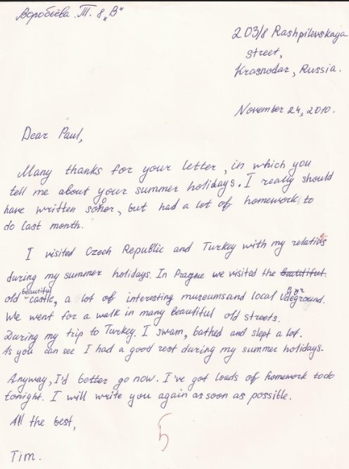 Письмо другу на английском можно писать в более свободной стилистике, чем деловое, подразумевающее сдержанный тон и официальные обороты речи. Правила составления деловой корреспонденции вы можете изучить в другом разделе нашего сайта, а сейчас мы займемся разработкой шаблона для дружеского письма.