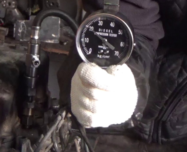 Самая главная причина снижения мощности двигателя — уменьшение компрессии. Если она в норме — двигатель находиться в хорошем состоянии. А вот её уменьшении говорит о неисправности. 1. Для начала надо убедиться, что стартер и аккумулятор в нормальном рабочем состоянии. А моторное масло на достаточном уровне. 2. Заведите двигатель и прогрейте его до 80-90°С. 3. Ослабьте гайки со стороны форсунки инжекторных трубок, и отсоедините трубки от держателей форсунок. ВНИМАНИЕ Необходимо использовать заглушки для предотвращения попадания инородных тел в форсунки. 4. Снимите пластину свечей предпускового подогрева и все 4 свечи. 5. Установите тахометр на место. 6. Установите адаптер прибора для измерения давления сжатия двигателя и сам прибор в отверстие свечи предпускового подогрева. 7. Проверните коленчатый вал двигателя с полностью открытой дроссельной заслонкой и замерьте сжатие в том месте, где прибор для измерения