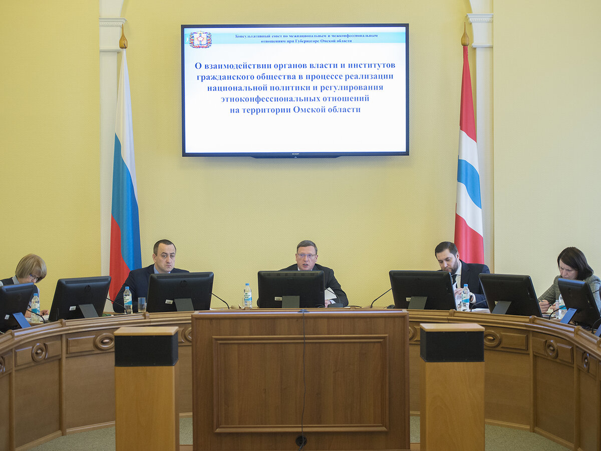 Актуальные вопросы взаимодействия органов власти и институтов гражданского общества обсуждались сегодня на Консультативном совете по межнациональным и межконфессиональным отношениям при Губернаторе Омской области. В декабре внесены принципиальные изменения в Стратегию государственной национальной политики Российской Федерации. Губернатор Александр Бурков предложил обсудить, как в дальнейшем выстраивать взаимодействие с учетом новых подходов к национальной политике. «Нам необходимо синхронизировать нашу работу с теми целями и задачами, которые Президент обозначил в послании Федеральному собранию и в майском указе, а также с другими документами стратегического планирования», - отметил Александр Бурков. Омская область – территория согласия. В мире и дружбе в регионе проживают 122 национальности. По данным социологических исследований, уровень межэтнических отношений в Омской области оценивается как высокий. Более 90% омичей считает ситуацию в регионе стабильной и спокойной. Укрепление гра