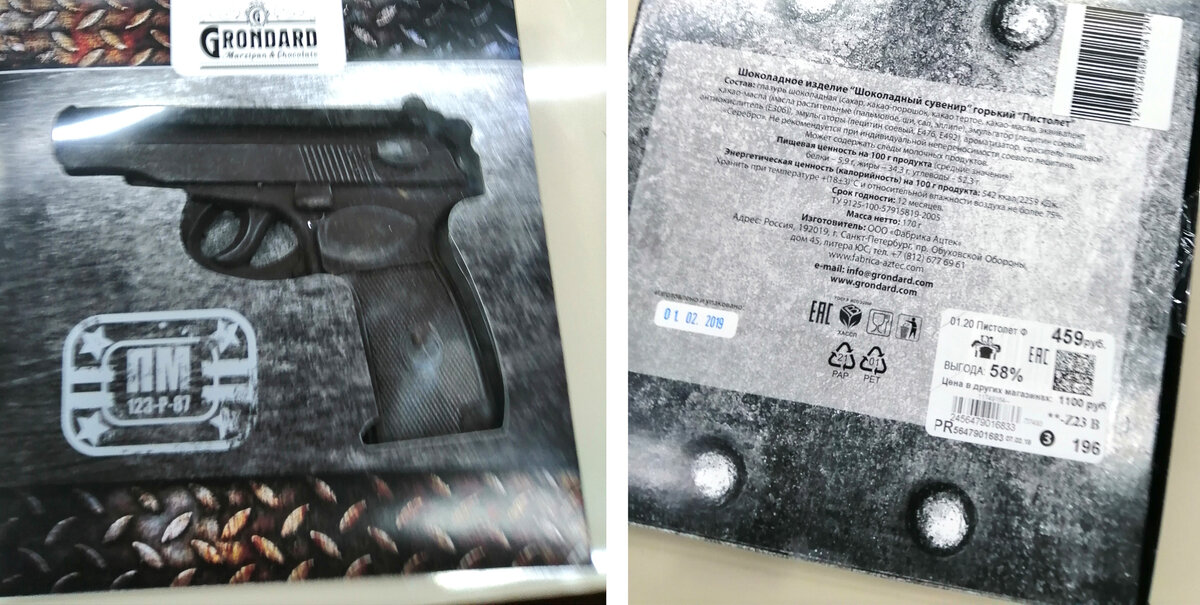 В преддверии праздника многие женщины задумываются, что подарить мужчинам, как сделать небанальный подарок, который заставит удивиться? А что если подарить … вот такой пистолет? Практически все мужчины не равнодушны к оружию, да и праздник все-таки – Защитника Отечества. А такой пистолет, очень похожий на настоящий сделан из шоколада. Ну, если ваши мужчины не готовы к таким сюрпризам и не любят розыгрыши, то можно выбрать что-то более привычное. В «Фамилии» есть недорогие кожаные кошельки, сувенирные кружки и т.д. По статистике, около 80% мужчин хотели бы получить в подарок одежду. И здесь «Фамилия» снова приходит на помощь. Здесь большой выбор рубашек известных производителей по доступным ценам. Рубашки LE SHARK, JACK WILLIAMS, Allan Neumann смотрятся стильно и модно. Есть стильные толстовки, свитера. Словом, есть из чего выбрать. Приятных покупок! Также читайте: Подарки для мужчин: знаки внимания от «Ленты» | Манго за 139 рублей – обман в «Ленте», или Как вернуть деньги за перепла