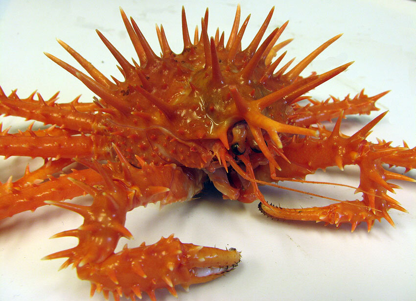 Настоящий камчатский краб и его палочки. Где же этот представитель семейства крабовидных прячет свои палочки. Давайте искать вместе. У краба 8 клешнёй и один панцирь, или как его ещё называют карапакс. Внутренность клешни представляет собой мускульную массу, то есть цельное крабовое мясо, однако мяса там маловато. И на изготовление одной целой палочки явно не хватает. Ну а что внутри панциря? Желудок да жабры. Откуда же тогда растут крабовые палочки? Сейчас разберёмся. Оказывается эти "краба имитаторы" придумали ещё в 1970 году в Японии. Дефицит натурального мяса краба, неотъемлемого атрибута национальной кухни, привёл к резкому повышению цен на этот продукт. Поэтому японские повара решили найти альтернативу крабовому мясу. Японцы народ сообразительный. Конечно,выход был найден. Они взяли и модернизировали своё блюдо Камабоку. Для его производства используют рыбу, мясо которого имеет белый цвет. Сейчас мы увидим, как готовят прообраз современных крабовых палочек. Чтобы сделать