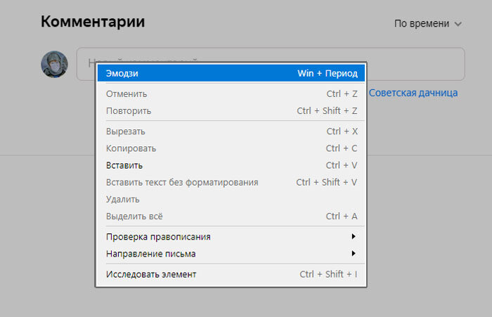 Без предисловий, коротенько и по-существу. Правой кнопкой мыши вызываете контекстное меню: Выбираете "смайлики" - Эмодзи (мышкой) или одновременным нажатием клавиш (Win) + (.) и выбирайте нужный смайлик в следующем меню: И вперед! Ещё контекстное меню, которое вызывается правой кнопкой мышки можно вывести до-о-олгим нажатием клавиши: А затем стрелками выбираете нужный пункт. Кстати, эта кнопка может оказаться полезной, если сломалась мышь. Она помогает выйти из этого затруднительного положения...не только чтобы поставить смайлик...🙄