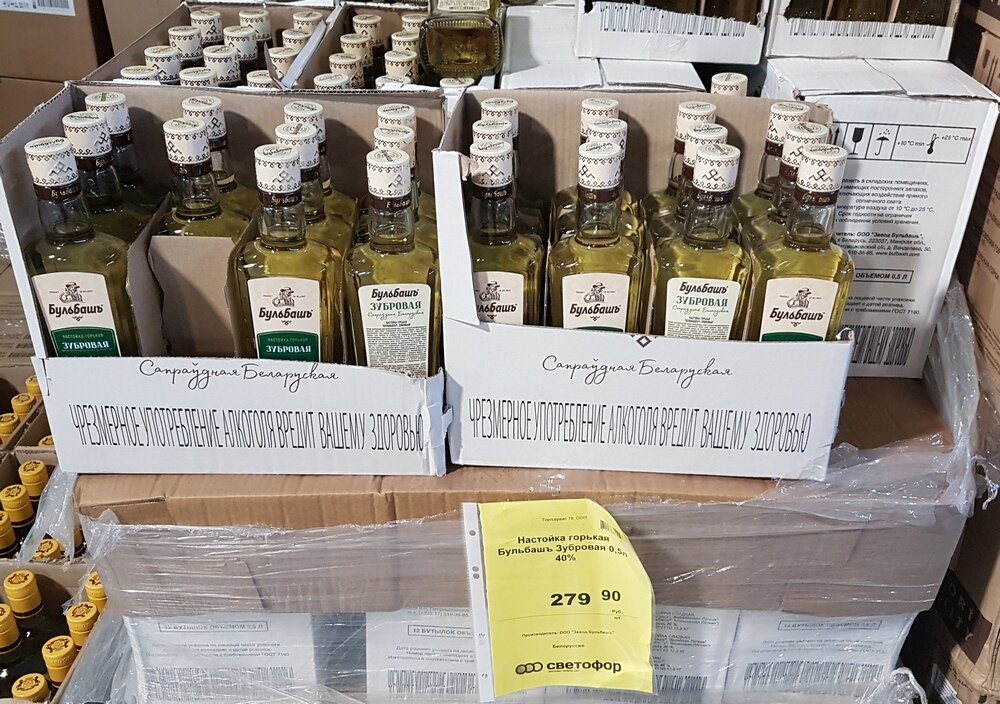 Исследуя ассортимент «Светофора» мы с мужем изрядно замерзли. Прохладненько в большом металлическом ангаре, когда на улице минус 12.. Поэтому, увидев эту стопку коробок, понимающе переглянулись. Сразу представился перчено-травяной вкус старой Зубровки и внутри разлилась приятная теплота. Дороговато конечно. Обычная водка гораздо дешевле там продается. Но мы ж не пить, а в качестве профилактики от простуды…… Но тут одна бутылка сколько должна стоить…. очень оригинальная. И как-бы предупреждающая — разливать по 50 грамм. Ну мужу 50 грамм — это нормально, а мне, не употребляющей крепкие напитки, даже многовато. Так что надолго хватит. Вот где по-настоящему натуральный продукт. В составе только спирт, артезианская вода и травки. И никакой химии….. С акцизной маркой все в порядке. Тест сканером прошла. Отзывы о напитке отличные. Короче купили…… Если честно, то мне показалась сладковатой немного, с легким карамельным привкусом. Но вкусно и согревает великолепно. А с салом с чесночком....
