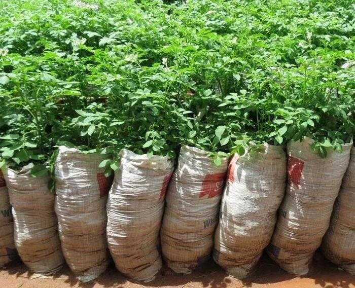 Урожайный метод взращивания картофеля в мешках.