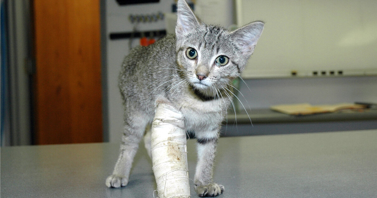 Активные кошки особенно в молодом возрасте нередко попадают в неприятные ситуации, одна из которых – перелом лапы. При открытом переломе травма определяется без труда. Узнать о закрытом переломе не всегда возможно. Кошки помимо игривого нрава имеют скрытный характер. Они, скорее, будут переживать боль «молча», чем обратятся к человеку. Важно вовремя определить перелом и оказать первую помощь питомцу. Как узнать. Прежде всего, стоит обратить внимание на изменившееся поведение животного: Однако если кошка передвигается на трёх лапах, это ещё не значит, что у неё непременно перелом. Возможно, в лапу попала заноза, из-за которой больно наступать, произошёл вывих, кошка поранилась или ушиблась. Прежде чем оказывать первую помощь, осторожно осмотрите лапку. На перелом указывают: При осмотре кошка, скорее всего, будет кричать и постарается вырваться. Будьте ласковы к питомцу. Перед осмотром успокойте животное и устройте на коленях. Старайтесь не сжимать сильно лапку, прощупывая аккуратно двум