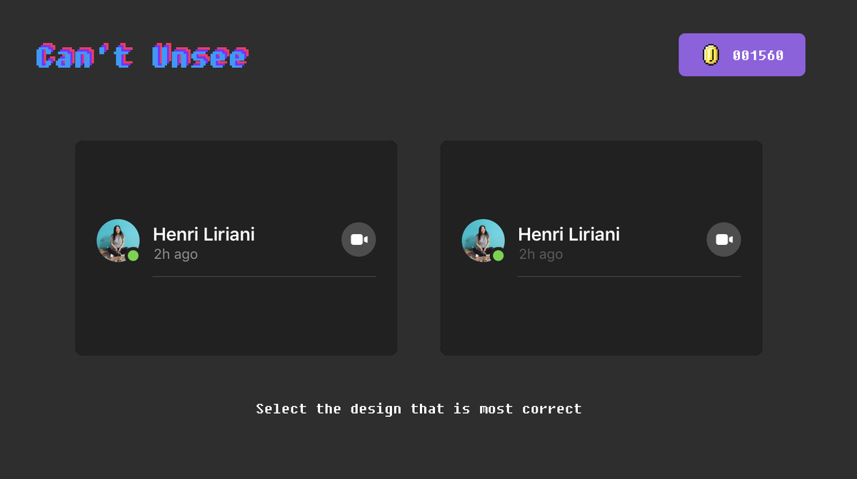 Простая игра на внимательность и понимание принципов дизайна, которые используются в операционной системе для айфонов и айпадов. Игра называется Can't Unsee, то есть «Хрен развидишь»: www.cantunsee.space В игре пятнадцать заданий. В каждом нужно выбрать один правильный вариант дизайна из двух. Когда все задания кончаются, можно начать с начала и получить следующие пятнадцать заданий. И так пока не надоест.