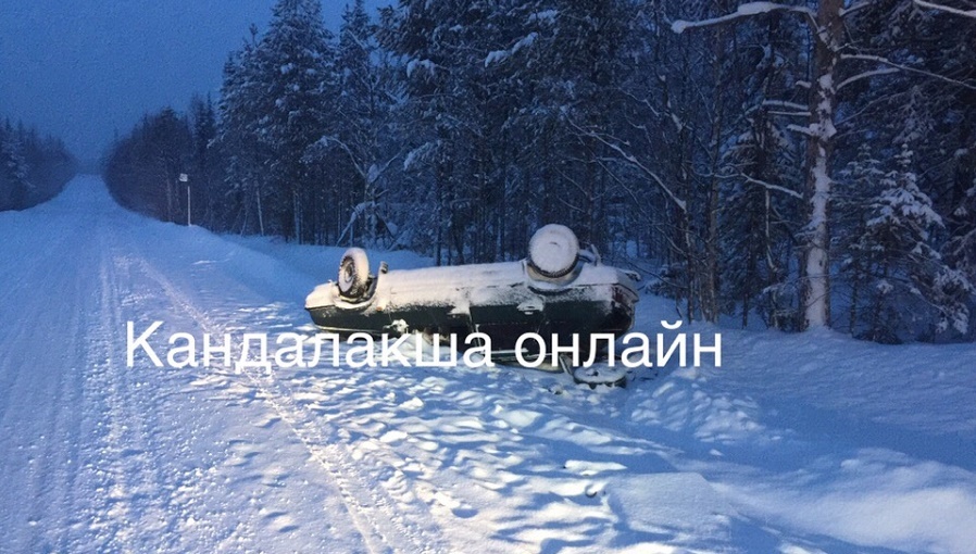 Под Кандалакшей автомобиль вылетел в кювет и опрокинулся на крышу