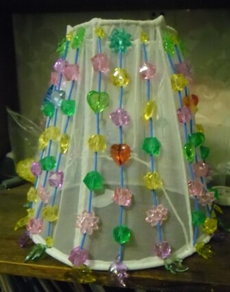 Сегодня я решила реставрировать старый торшер для дачи, и поделиться с вами свои опытом. 1. Фотографии, как он выглядел, у меня нет. Мне он достался в таком состоянии. 2. Начнем с абажура. Абажура как такового тоже нет, остался только каркас. 3. Я решила сделать классический абажур, который к низу расширяется. Для этого мне понадобились велосипедные спицы длиной 30 см – 6 штук и пластиковое кольцо от рыболовного садка. Я замеряла длину окружности кольца сантиметром. 4. Я разделила окружность на 3 равные части с помощью все того же сантиметра. Ножницами процарапала метки. В этих же местах горячей спицей сделала дырку под углом насквозь. Дала пластмассе остыть. Вкрутила велосипедные спицы в полученные отверстия. 5. Верхний загнутый конец с помощью ниток кресс- накрест примотала к верхнему кольцу уже имеющегося каркаса. 6. Вот что из этого получилось. 7. Конструкция получилась не достаточно жесткой. Я решила добавить еще спиц. Расстояние между предыдущими спицами на пластмассовом кольце