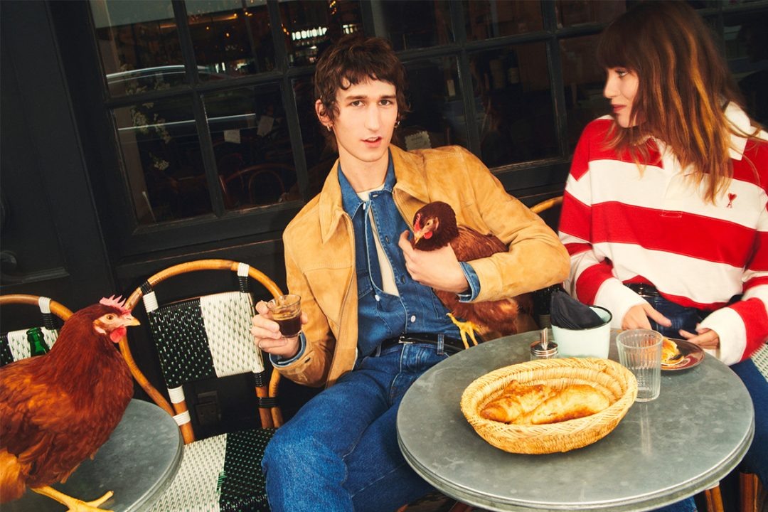 Парижский бренд AMI представил коллекцию, на съемках которой моделям пришлось взять в руки лопаты, корзины и кур