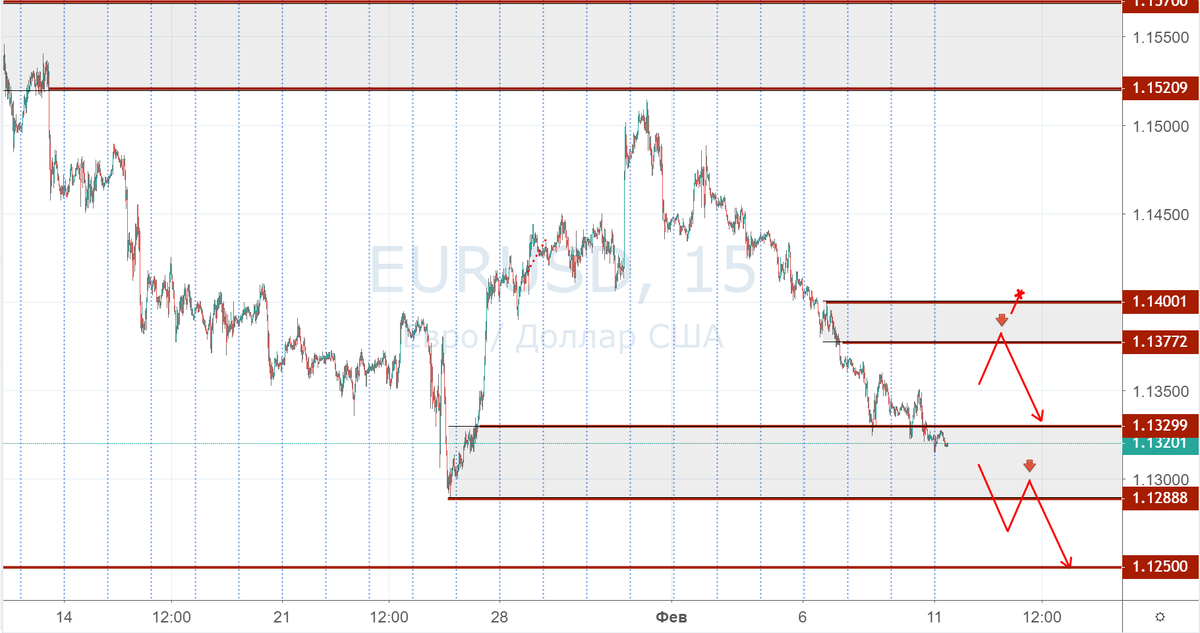 EUR/USD По итогам прошлой недели цена понизилась до уровня поддержки, где и закончила неделю. И продавать по текущим ценам, однозначно, не стоит, так как вероятность отбоя вверх присутствует. В этом плане лучше дождаться этого отбоя в зону 1,1377-1,1400 и рассмотреть продажи оттуда с целью 1,3030. Сегодня понедельник, и особых движений можно не ждать. Так же можно рассчитывать на второй вариант. Это проявление инициативы продавцов, пробой уровня 1,1288 и уже после коррекции рассчитывать на продажу до 1,1250. Стоит понимать, что для того варианта развития событий лучше видеть соответствующий фундаментальный фон. Иначе этот пробой может оказаться ложным. И не стоит забывать, что покупатели могут начать проявлять инициативу и цена вырастет более чем на 1,1400. В этом случае стоит отложить торговлю на этом инструменте. Так как сценарий большого флэта может вернуться. GBP/USD Вокруг английской валюты присутствует много неопределённости. И ложный пробой, который состоялся в четверг, заста