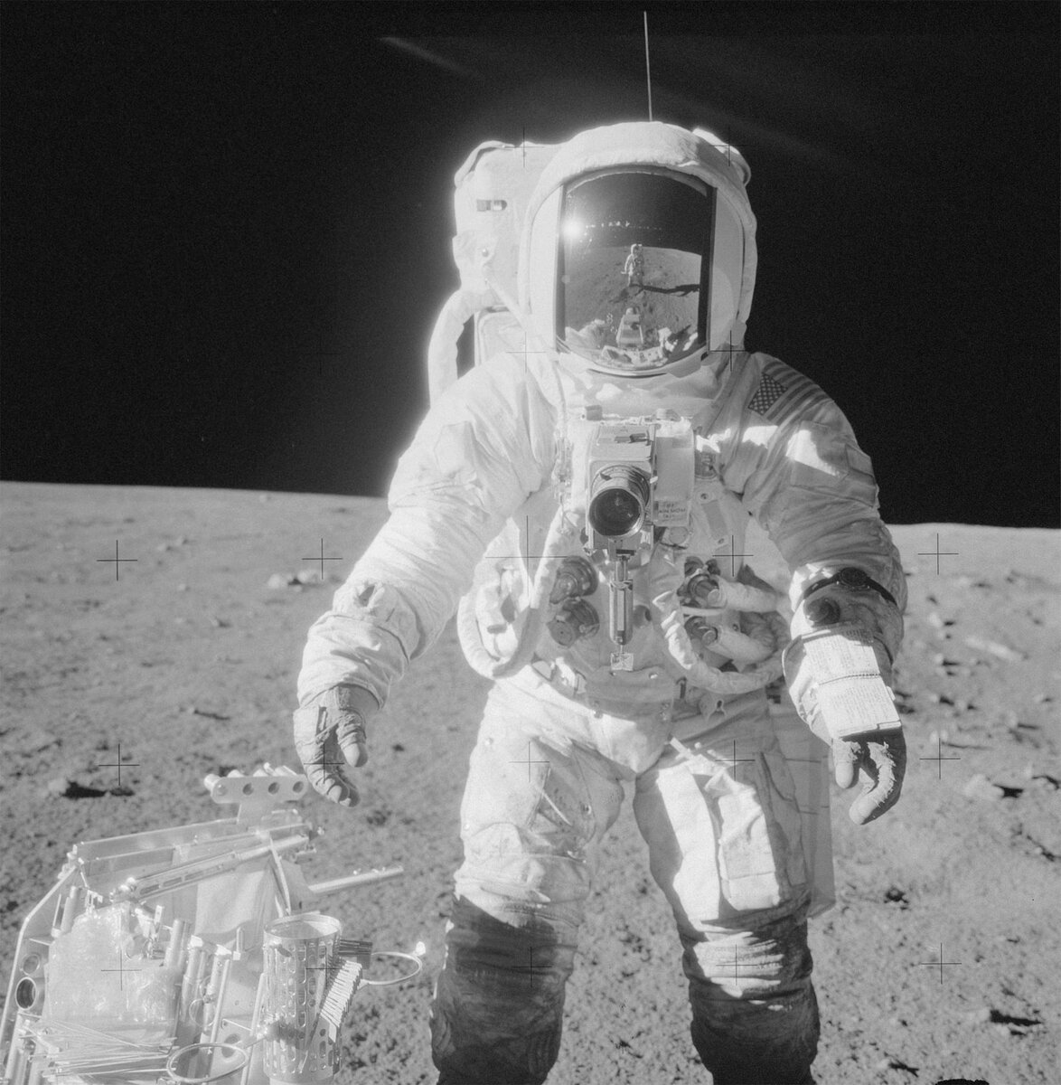 Астронавты имели при себе лучшую среднеформатную камеру того времени — Hasselblad 500EL с объективами Zeiss Planar f/2.8 80 мм и Zeiss Sonnar f/5.6 250 мм, а также новейшую Hasselblad 500EL Data Camera со специально разработанным для НАСА объективом Zeiss Biogon f/5.6 60 мм. Каждая камера тщательно калибровалась на Земле, а экипажи проходили специальную подготовку по фотографированию в перчатках скафандра и без использования видоискателя, так как его применению мешал шлем.
