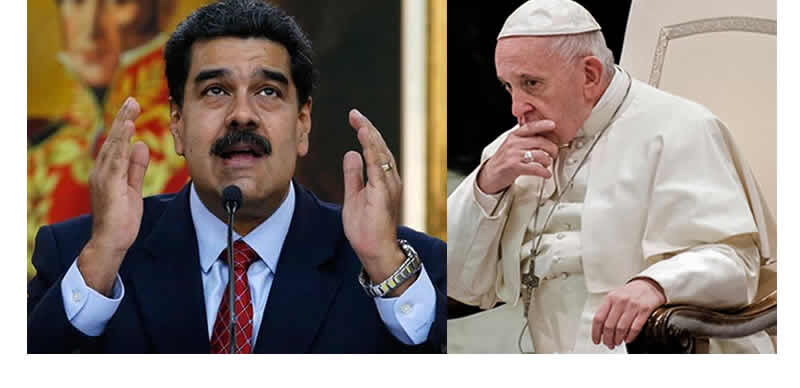 Для Николаса Мадуро сложилась фатальная ситуация. Астролог Юлия Рольник о влиянии звезд на ситуацию в Венесуэле Мадуро направил папе Римскому Франциску письмо, в котором попросил «приложить все усилия в процессе облегчения и расширения диалога» с оппозицией. Лидер оппозиции страны Хуан Гуаидо, ранее провозгласивший себя временным президентом, вслед за Мадуро также обратился к папе римскому Франциску. В интервью итальянскому телеканалу Sky TG24 он попросил понтифика содействовать в урегулировании политического кризиса в Венесуэле. "Я взываю, ко всем, кто может нам помочь: папе римскому, дипломатам..." - заявил Гуаидо, добавив, что разрешить конфликт способны, по его мнению, только внеочередные выборы президента. Гуаидо добавил, что хотел бы принять папу римского в Венесуэле, которая является католической страной с сильными религиозными традициями. Официальный Ватикан пока ничью сторону не занял, но устами папы Франциска призывает преодолеть политический кризис и найти мирное разрешение