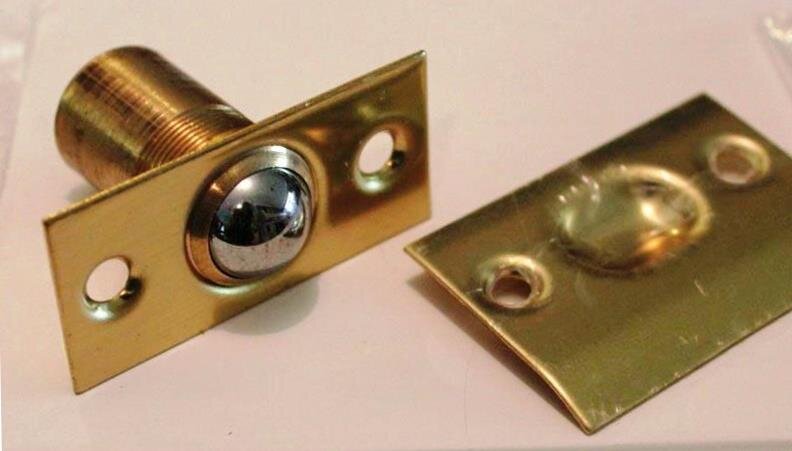 Рад приветствовать постоянных и новых читателей и, не отступая от новой традиции, напомню о возможности подписаться на канал! Сегодняшний нетипичный пример мужского рукоделья касается установки шарикового фиксатора или защелки в обычную распашную межкомнатную дверь. Вот она на фото. Впервые подобную защелку устанавливал лет 8 назад, и, несмотря на свою простецкую простоту, более надежного способа решить проблему открывания двери сквозняком пока не нашел. Можно, конечно прикрепить доводчик, либо установить стандартную врезную ручку с защелкой, но считаю, что шариковый фиксатор все же удобнее. При наличии доводчика сильное движение воздуха заставляет распашную дверь дребезжать и постукивать, что создает неприятный шум, да и ресурс многих доводчиков и ручек с защелками совсем небольшой. Устанавливать фиксатор с шариком, рекомендую нестандартно: не посредине полотна в боковой торец, а в верхний торец. На видео, что в конце, показываю, как работает механизм, насколько это эстетично и надежн