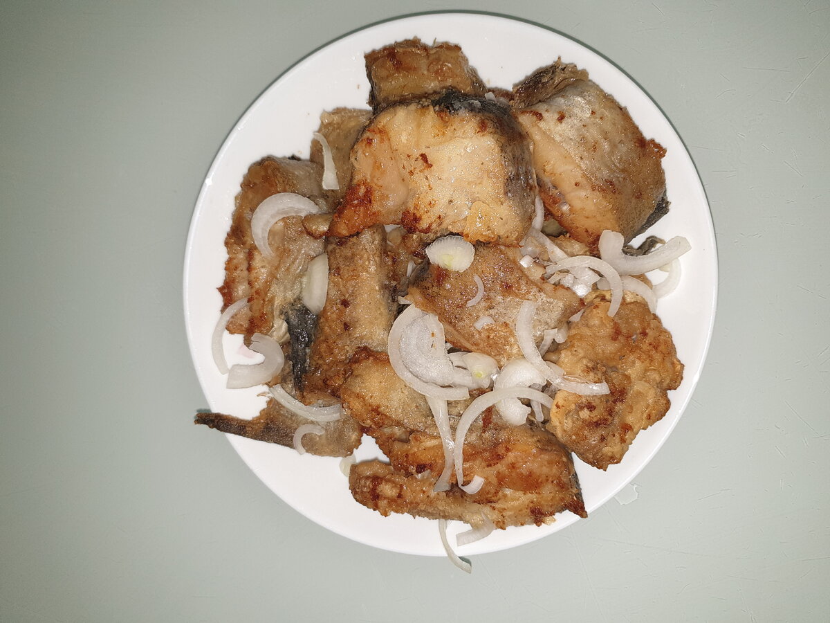 Многие хозяйки привыкли жарить рыбу обычным способом (обваляли в муке и на сковороду), но данный рецепт раскроет вкус минтая по-новому. Все что для этого нужно это лишь замариновать рыбу минимум на 8 часов, а после обжарить привычным способом. Ингредиенты для блюда Минтай, Соевый соус, Специи для рыбы, Сок лимона, Мука, Репчатый лук, Масло подсолнечника. Как приготовить 1. На первом этапе приготовления следует тщательно промыть тушки минтая, нарезать их на не крупные кусочки, после чего еще раз промыть. 2. Сложить рыбу в глубокую миску, добавить соль и специи. Сбрызнуть лимонным соком и добавить соевого соуса. 3. Хорошо перемешать все компоненты, накрыть чашку и поместить ее в холодильник минимум на восемь часов. В идеале оставить рыбу в маринаде на ночь. 4. Когда минтай будет готов к жарке, каждый кусочек следует хорошо обвалять в муке. 5. Готовить рыбу необходимо в разогретой сковороде, не жалея при этом растительного масла. Каждый кусок должен быть хорошо обжарен со всех сторон. 6.