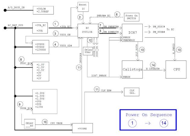 После того как сигнал от кнопки включения попадает на EC, EC в свою очередь передает этот сигнал в виде PM_PWRBTN# на южный мост.