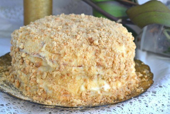 ТОРТ "НАПОЛЕОН" НА СКОВОРОДКЕ ИНГРЕДИЕНТЫ: Для теста: ● Мука — 3 стак. ● Сахар — 1 стак. ● Масло сливочное — 2 ст. лож. ● Яйца — 3 шт. ● Сода — 2/3 ч. лож. ● Соль — щепотка Для крема: ● Молоко — 1 л ● Яйца — 3 шт. ● Мука — 2 ст. лож. ● Сахар — 1 стак. ● Ванилин ● Орехи грецкие — 100 г ПРИГОТОВЛЕНИЕ: Чтобы приготовить торт «Наполеон» на сковороде взбиваем яйца с сахаром, добавляем мягкое масло, соль, соду (погасить уксусом) и 2,5 стакана муки (оставшаяся мука пойдет на раскатывание коржей). Замешиваем тесто и оставляем его отдыхать на 15-20 мин.Количество муки и сахара я измеряла стаканами емкостью 250 мл. В это время готовим крем для торта «Наполеон». Хорошо растираем яйца с сахаром. Затем добавляем муку, перемешиваем и разводим холодным молоком.Ставим на небольшой огонь и доводим до кипения, непрерывно помешивая венчиком, чтобы избежать комочков и чтобы крем не пригорел. Когда крем закипит, снимаем с огня, добавляем ванилин и отставляем остывать.Тесто раск