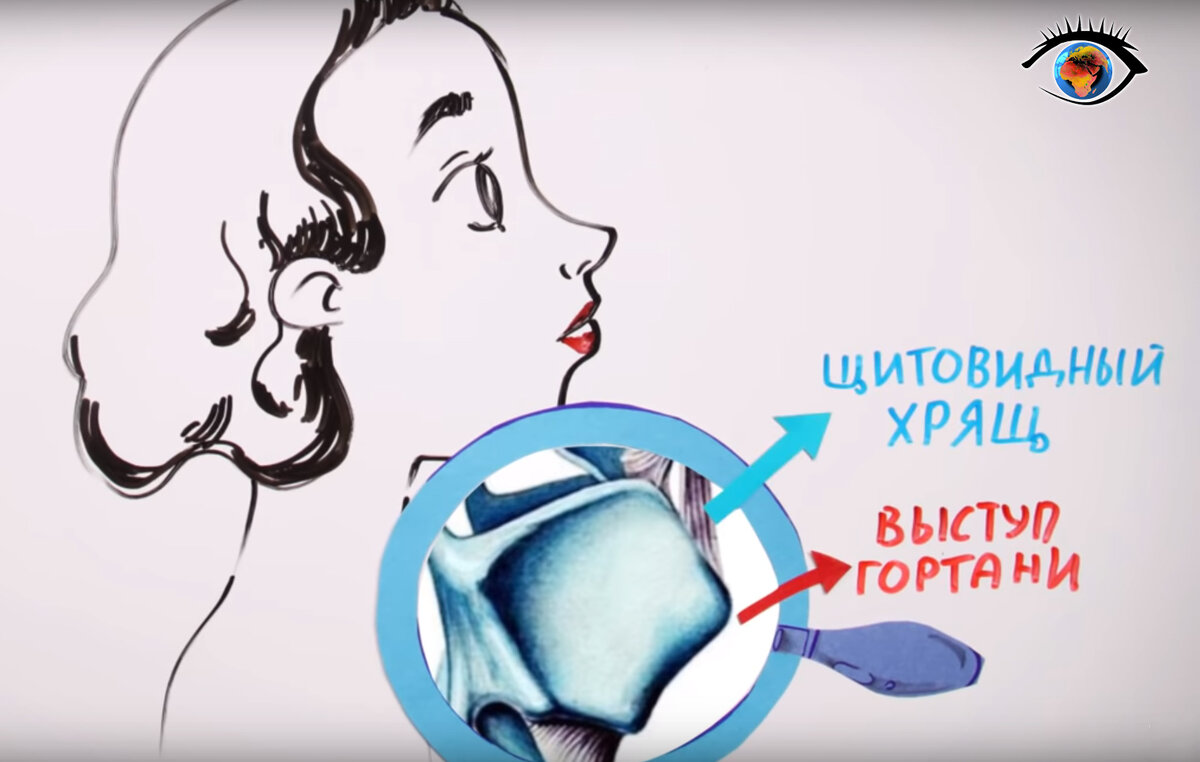 Существует легенда, что Ева, по приказу Змея-искусителя, дала попробовать Адаму яблоко запретного дерева. Как только он начал его есть, тут же подавился и кусок яблока осталась в горле, образовавшись в выступ на шее, называемый кадыком. История интересная, но какие функции в реальной жизни выполняет кадык? Научное определение: выступ гортани (кадык) — элемент щитовидного хряща, которая выступает на передней поверхности шеи. Существует заблуждение и порой можно услышать, что кадык есть только у мужчин. Ничего подобного, у женщин он тоже есть. Просто он окружен жиром и не так заметен. Так же у женщин меньше длина голосовых связок 1. Способность менять расположение кадыка с помощью мышц даёт нам возможность контролировать тембр голоса. Звук рождается следующим образом: Через натянутые голосовые связки проходит воздух, в следствие чего появляется звук. 2. Кадык выполняет защитные функции для гортани и голосовых связок. Лучше стараться избегать травм шеи. Травмирование кадыка крайне опас