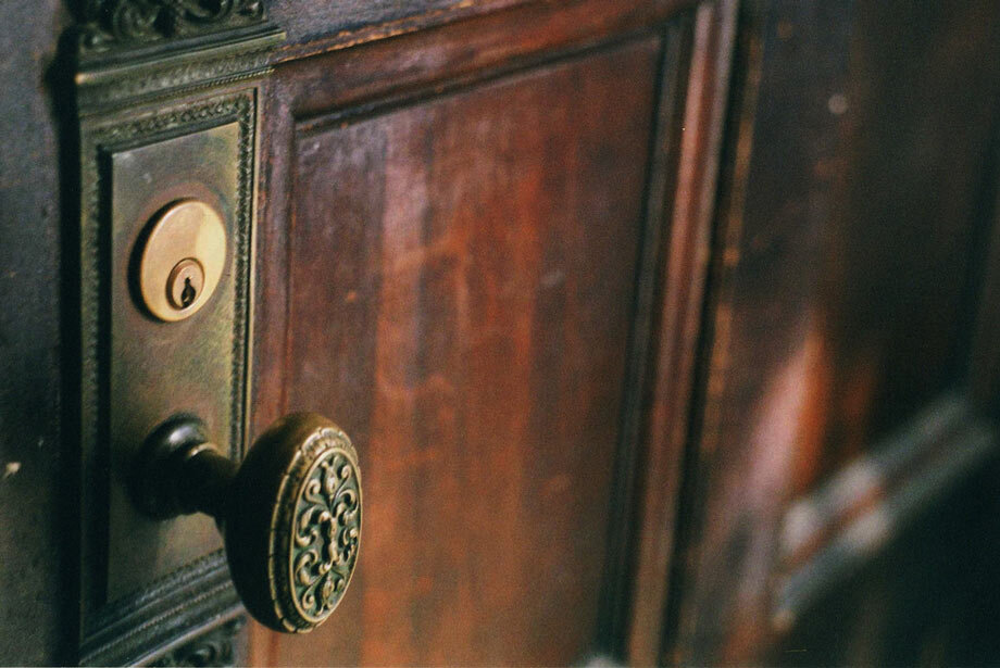 Но как только мы дотронулись до стен, то поняли, что они не совсем уж простые. Они были полностью усыпаны дверными ручками.