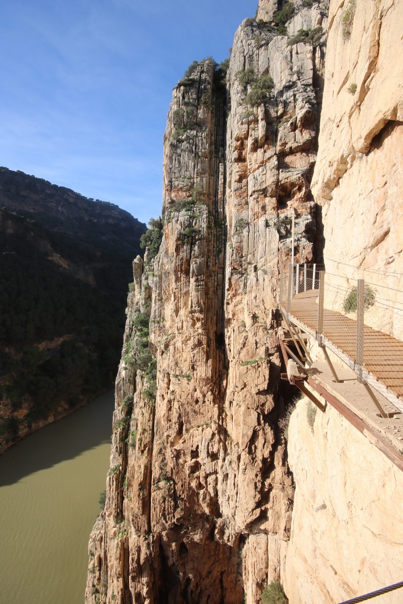 Королевская тропа — это сооружение, состоящее из бетона и вбитых в скалу костылей и железнодорожных рельсов. Тропа расположена между водопадами Чорро и Гайтанехо в ущелье Эль Чорро. Дорога расположена на большой высоте от земли, её протяжённость составляет 3 километра, ширина всего 1 метр. Долгое время она была официально закрыта для посещения, т.к. находилась в очень плачевном состоянии. Однако в 2015 году, после реконструкции ее открыли вновь, как официальный туристический маршрут. Билеты и актуальную информацию можно найти на официальном сайте http://www.caminitodelrey.info/en/ При покупке билета можно купить как билет только на тропу, так и билет на тропу +автобус. Все дело в том, что по тропе можно пройти только в одном направлении, с севера на юг, а обратно можно к машине можно доехать на автобусе. Стоит автобус 1.5 евро. Купить можно как непосредственно на сайте, так и сразу при входе в автобус. Ходят они порядка 2 раз в час. Чтобы попасть на тропу необходимо ех