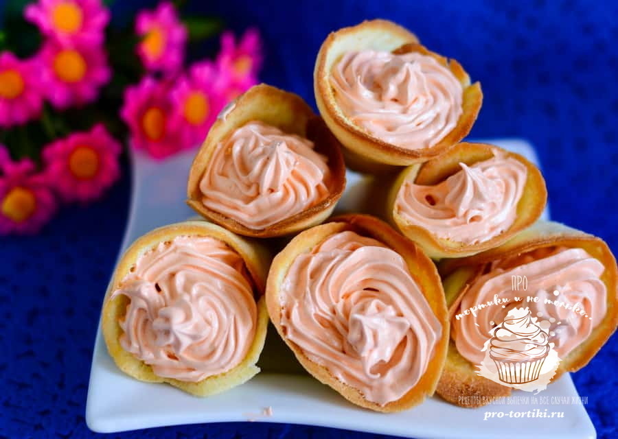 1) ПЕЧЕНЬЕ "КАЛЛЫ" ИНГРЕДИЕНТЫ: ● 1 стакан сахара ● 1 стакан пшеничной муки ● 4 яйца ● маргарин для смазки противня ● 1 пакетик ванилина ПРИГОТОВЛЕНИЕ: 1. Разбиваем в миску яйца, добавляем сахар и ванильный сахар, перемешиваем, не взбивая. 2. Добавляем муку и тщательно перемешиваем до получения однородного жидкого теста. 3. Горячий противень обильно смазываем маргарином и кладём на него 4-5 чайных ложечек теста с большими промежутками. 4. Выпекаем в заранее разогретой духовке при температуре 200 градусов примерно 5 минут. Края печенья должны хорошо зарумяниться. Вынимаем из духовки, шпателем приподнимаем печенье, но не снимаем с листа. 5. При помощи бумажного полотенца быстро формируем цветок,если печенье остынет,оно не свернется- раскрошится. Заварной крем: Стакан молока, пол стакана сахара, два желтка, столовая ложка с горкой муки, ванильный сахар 1 чайная ложка.(я еще добавила ложку ликера). 1. Высыпать в желтки всю муку, весь сахар и ванилин. Тщательно растереть.Молоко дове