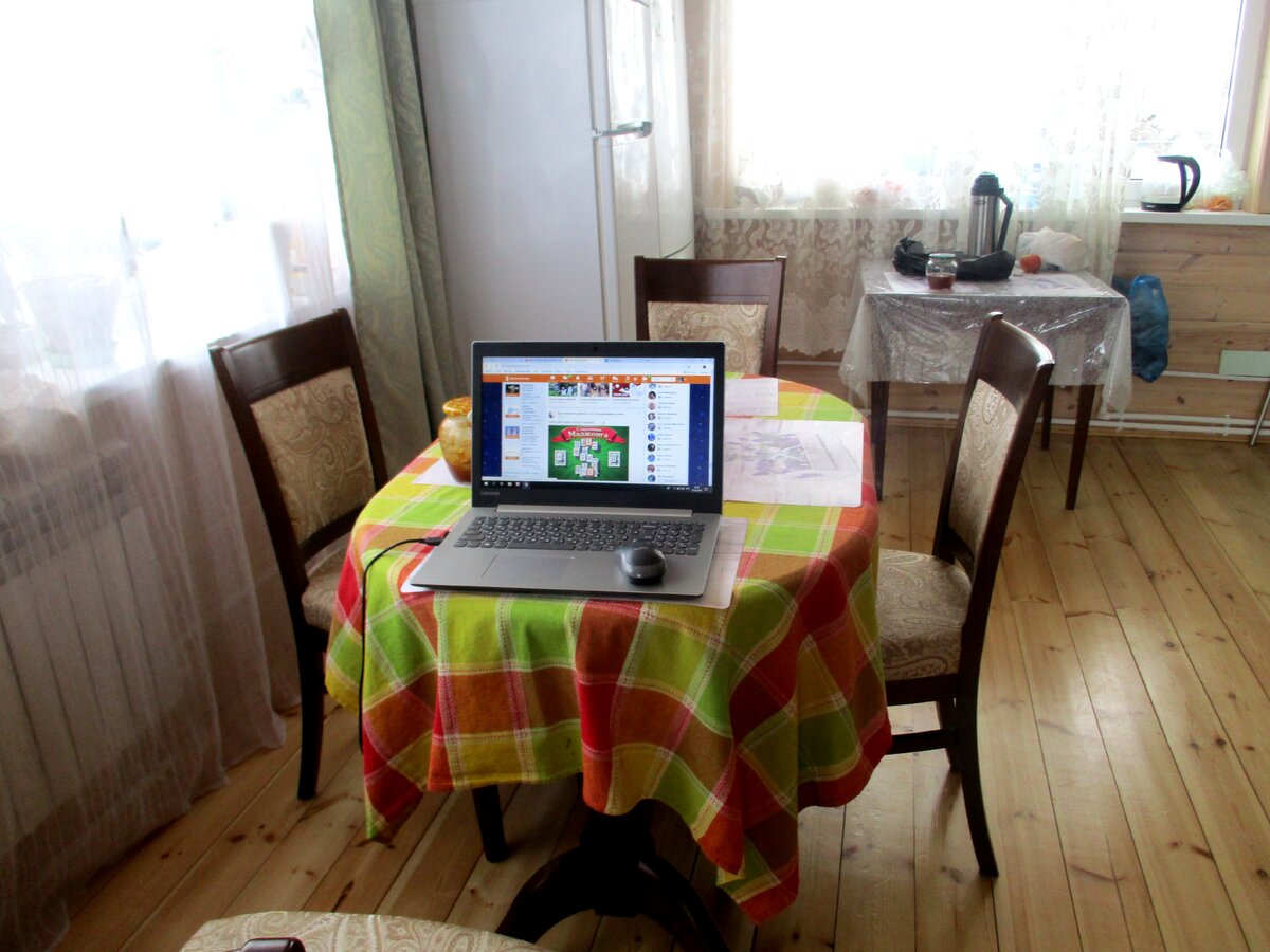 Здравствуйте,дорогие друзья! Хочу вас провести по нашему деревенскому дому. Многие наши друзья ещё не были у нас в гостях, хотя мы всех приглашаем....Но как всегда у всех нет времени...Вот я и решила провести небольшую экскурсию по нашему дому в д.Алексино, Владимирской области. Жизнь наша течет размеренно, не спеша. Здесь тихо и очень красиво! Вот главная комната-гостиная,совмещенная с кухней. Иногда я здесь работаю за ноутбуком.... Вид гостиной с холла. Виден комплекс наших любимых котов. Лестница на 2 этаж.... Спорт у нас есть! И стульчик для внука Тимура. Вид на веранду с гостиной... Люда,сестра работает,а Далилка учится... Комната мамочки на первом этаже. А это коробка-дом Далилы...Уже выбросить пора,а рука не поднимается... Кошка прячется там, когда её обижают... В комнате у мамы стоит приличное кресло. Но Евсею места мало и там. Опять что-то шуршащее, надо посмотреть поближе... Сегодня выдался чудесный,солнечный день! А как птицы поют! Фото с балкона второго этажа. З