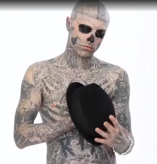 Попал в книгу рекордов Гиннесса как человек, имеющий огромное количество татуировок на теле. Парень перенес серьезную операцию по удалению опухли в мозге, поэтому «смерть» и стала его визитной карточкой. Теперь же фото зомби боя красуются на глянцевых страницах модных журналов. Рик даже снимался в клипе Леди Гаги.