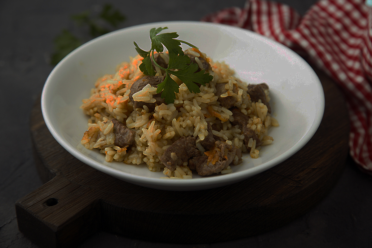 Всегда ломаешь голову, чем вкусно и полезно накормить семью, а особенно детей! Они должны в полном составе получать все полезные вещества ежедневно, это блюдо на второе подойдет как на ужин, так и на обед. СОСТАВ: Рис (обязательно круглый, он намного вкуснее, кто понимает) - 300 гр. Говядина отварная - 200 гр. Лук - 1 шт. Морковь - 1 шт. ПРИГОТОВЛЕНИЕ: Ставим варить говядину, можно с косточкой, потом бульон и обобрав косточку можно сварить любой супчик. Промоем и замочим рис, очистить лук с морковкой, порезать кубиком. Говядина сварилась, рис отдохнул в подсоленной воде, режем все на кусочки (мясо, лук, морковь). Берем казанок, или хорошую кастрюлю с толстым дном, оправляем все, немного обжарить на капельке масла. Слить воду с риса и засыпать наши компоненты. Залить водой с палец, посолить. Никаких приправ, ведь мы хотим накормить детей да и самим полезней варить до неполного выкипания воды,перемешать и закрыть крышкой! Полезное, диетическое блюдо готово! Понравился рецепт? Нажмите