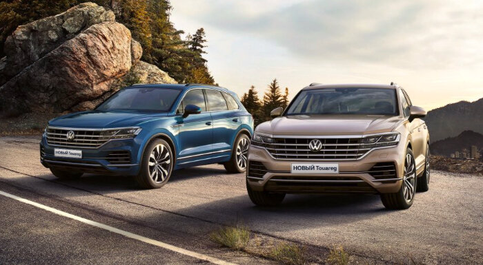Новое поколение Volkswagen Touareg впечатляет множеством своих нововведений. Например, активная электромеханическая система компенсации кренов, светодиодные матричные фары IQ light, являются новым техническим решением для модели. Дизайн нового поколения Дизайн нового поколения обещает удивить всех. Все детали направлены для того, чтобы показать мощь, настойчивость и уверенность в себе. Широкая радиаторная решетка и удлиненный капот приносят автомобилю нового поколения спортивный характер. Узнаваемый и динамичный образ автомобиля дополняется глянцевым спойлером на кромке крыши и крупными хромированными наконечниками выхлопных труб. "Обут" Touareg в 19-дюймовые диски. Новая технология фар IQ.light позволяет не только переключать ближний и дальний свет, но и с помощью матрицы отключать или включать отдельные светодиоды, что дает владельцу автомобиля делать освещение на свой выбор. Сами же фары в движении адаптируются под все условия среды и движения. Салон и обещает новое «измерение» ком
