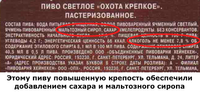 Важный момент: никто не станет вмешивать в пиво спирт. Во всяком случае, в здравом уме. Это слишком дорого и в целом бессмысленно: зачем делать что-то накладное самому, если дрожжи могут это сделать почти бесплатно? Да, бывает так, что пиво явно попахивает спиртом, но это следствие не намеренного добавления этанола, а лишь присутствия в пиве специфических эфиров.