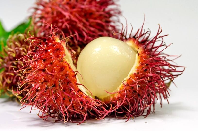Он покрыт мягкой кожей, напоминающей щетину, и имеет прозрачную мякоть внутри. Вкус рамбутана слегка сладковатый, немного мягкий, но очень насыщенный. Растёт в: Лаосе, Камбодже, Вьетнаме, Китае, Малайзии.