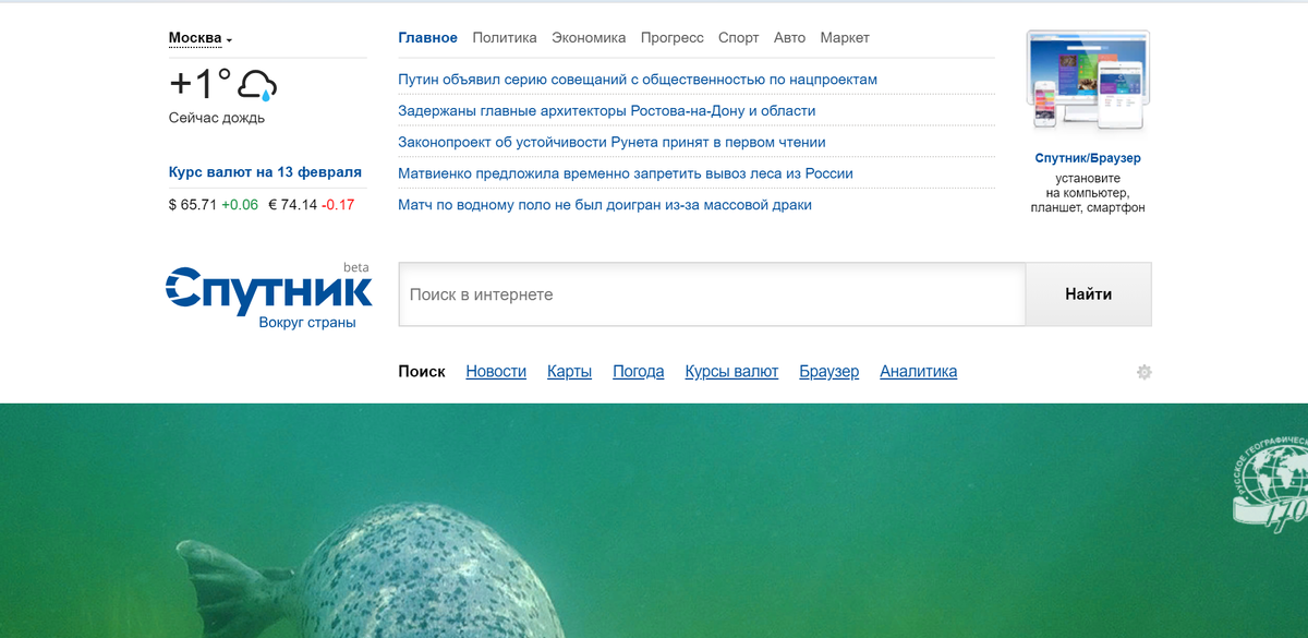 К удивлению, это довольно перспективный проект. Достаточно удобное оформление, фильтры, красивые картинки снизу, множество разделов: таких как Новости, Карты, Погода и т. д.