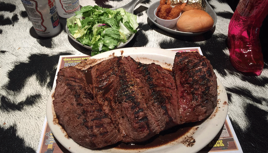 Приветствую тебя, Читатель! Соревнования по скоростному поеданию пищи проходили в разных странах мира в течение многих лет, но идея создать блюдо в ресторане, которому каждый гость сможет бросить вызов, возникла не так давно. Неудивительно, что эта традиция появилась в США. И здесь сложно сказать, какой порыв повлиял на реализацию этой затеи: любовь к еде или соревновательный дух :) Первым рестораном, который начал волну пищевых состязаний еще в 1913-м году, стал Crown Candy Kitchen в Сент-Луисе. Там гостям предлагали выпить 3.5 литра молочных коктейлей за полчаса. В случае победы, чек оплачивался заведением, а триумфатор получал победную футболку и фото на доске почета. А вот одним из самых известных и дублируемых в мире соревнований в этом роде является вызов 2-килограммовому стейку, который в 1962-м году стартовал в ресторане The Big Texan Steak Ranch в городе Амарилло, Техас. Вдобавок к мясу подавался овощной салат, креветки, запеченный картофель и булочка. Тем, кому удавалось съ