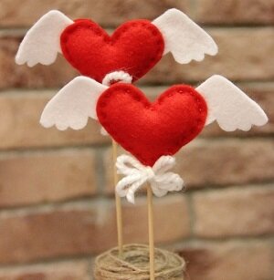 Скоро близится самый замечательный праздник День святого Валентина. В начале расскажем что это за мероприятие. Предположительно этот день назван по имени одного из двух раннехристианских мучеников с именем Валентин. Отмечающие этот праздник дарят любимым и дорогим людям подарки, цветы, конфеты, игрушки, воздушные шарики и особые открытки (часто в форме сердца), со стихами, любовными признаниями или пожеланиями любви. Мы предлагаем вам сделать подарок своими руками с малышом. Творите вместе с ребеночком. Ведь это так здорово и интересно. А также это отлично развивает моторику. Итак преступим: Вам потребуется кусочек фетра красного и белого цвета, зубочистка, красные нитки и иголка и немного шерстяной нитки. Вот вам шаблоны, по которым будет удобно все сделать. Дерзайте и подарите такие сердечки всем членам вашей семьи.