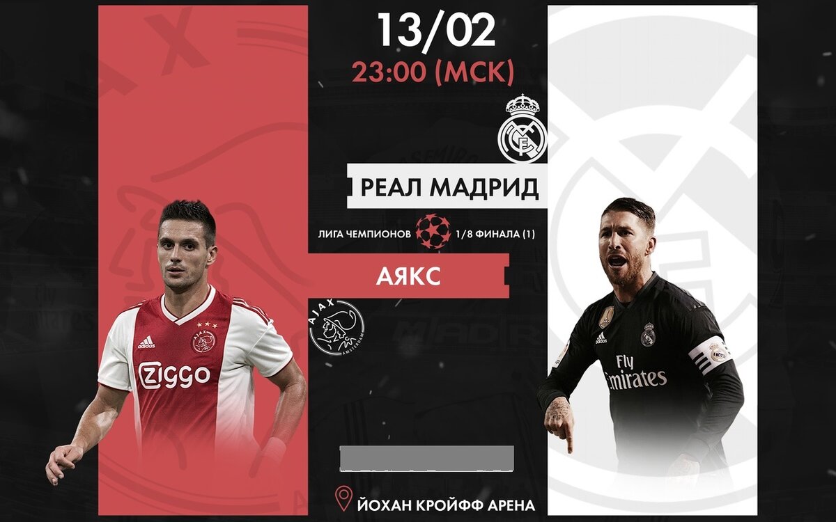 Стадион:Йохан Кройфф Начало: 13 февраля 2019 в 23:00 МСК во втором игровом дне Лиги чемпионов встретятся Амстердамский <Аякс> и Мадридский Реал( 1 Матч ) Если месяц назад после жеребьевки сразу когда Реалу достался Аякс все подряд говорили:Вот играй они сейчас,Аякс обязательно прошел бы дальше.И действительно,тот Аякс не сравниться с тем Аяксом,который сейчас,и тот Реал не сравним с тем,что есть сейчас.Эти команды встречались 6 раз,и все матчи Реал доказывал право носить название ''Королевского клуба''. За эти 6 матчей Реал забил 20 мячей в ворота Аякса,соперники смогли ответить лишь 2 скудными голами. Real Мadrid Реал,после ухода Роналду наконец-то начал нащупывать свою игру,Реал действительно очень хорошо играет,и не только хорошей в Эль-классико он нам это доказал,но и победив в дерби Мадридский Атлетико (1:3). Реал смотрится очень достойно.У Мадридской команды в составе не будет Льоренте и Иско.Как по мне,команда Солари в полном порядке,и готова дать бой