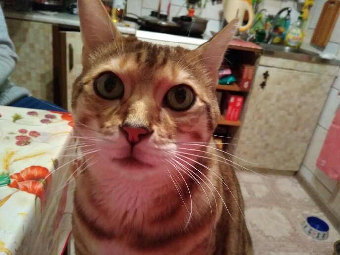 Встал он рано по утру Что же хочется ему Потянулся облизнулся И забыл зачем проснулся Вот какой рассеянный Кот самонадеянный! Стал в игрушку он играть Говорим ему: Ляг спать! Волю дал котейка лапкам Говорим ему: А тапком! Вот какой рассеянный Кот самонадеянный! Вместо тихо и поспать Кот стал песни нам орать Тапок метко полетел Вспомнил кот, что он не ел Вот какой рассеянный Кот самонадеянный! Кот от тапка увернулся Почесался, облизнулся Вышел котя в коридор Песнь орёт во весь опор Вот какой рассеянный Кот самонадеянный! Всю квартиру кот поднял К кухне он народ пригнал Дверь открыли чтоб зашёл Кот забыл зачем пришёл Вот какой рассеянный Кот самонадеянный! Дали коте сухарей Кот кричит, воды налей Дали ему воду Просит бутерброду Вот какой рассеянный Кот самонадеянный! Быстро слямзав колбасу Кот орёт ещё хочу Нарезаем бутерброд Смотрим кот водицу пьёт Вот какой рассеянный Кот самонадеянный! Налакавшись кот водицы С кухни вылетел как птица Раскидал