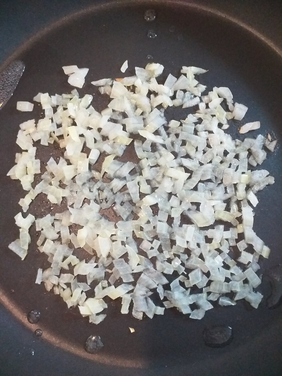 Обжариваем на сковородке в масле (растительном или сливочном) мелко нарезанный лучок в течение 2-3 минут.